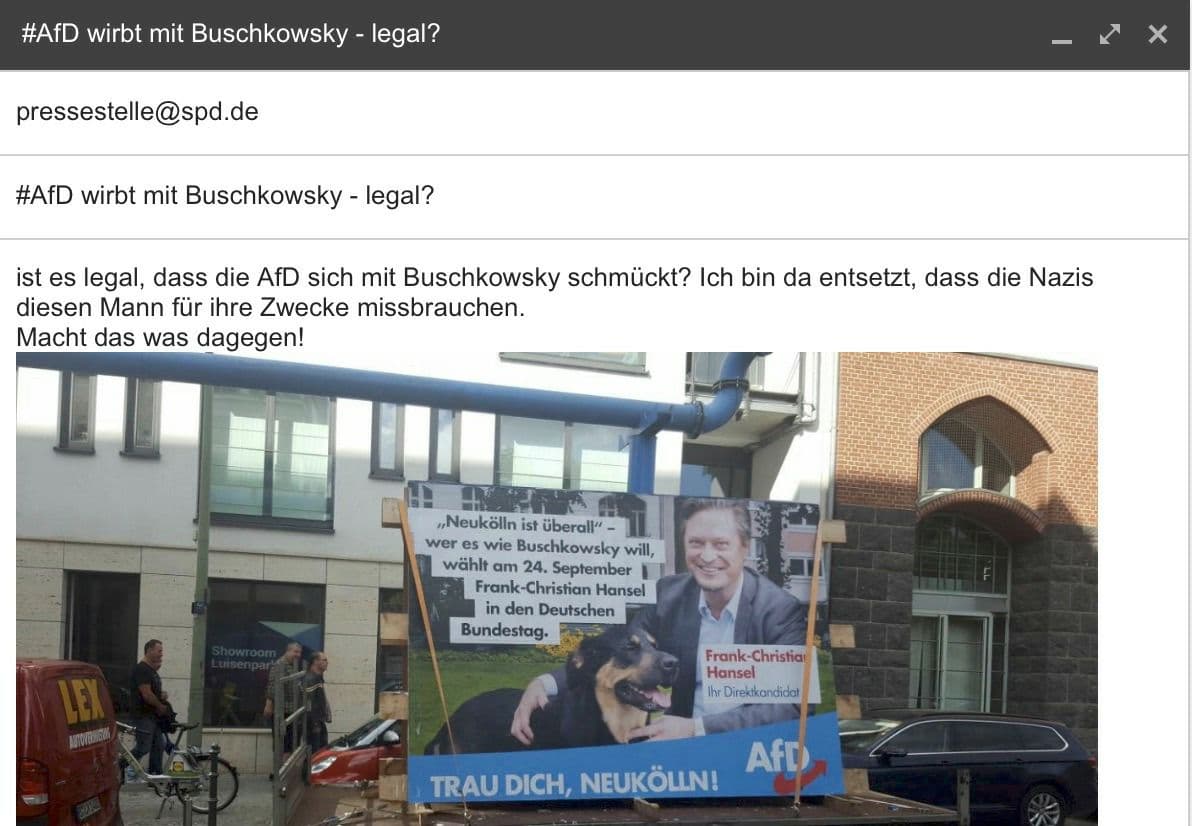 Ich will so handeln wie ich denke. Und ich denke, was Neukölln, Buschkowskys gesellschaftspolitische Ortsbestimmung und die daraus zu ziehenden politischen Konsequenzen betrifft, eben wie Heinz Buschkowsky. Also bin ich nur konsequent und sage: Wer es wie Buschkowsky will, muss AfD und mich wählen - übrigens: In Neukölln (mich) und überall (AfD). Im Ergebnis ergibt sich eine ehrliche und konsequente Kampagne, über die sich die SPD und die Berliner Morgenpost herzlich und gerne aufregen dürfen. Ich denke mal, Heinz Buschkowsky zwinkert eher mit den Augen...